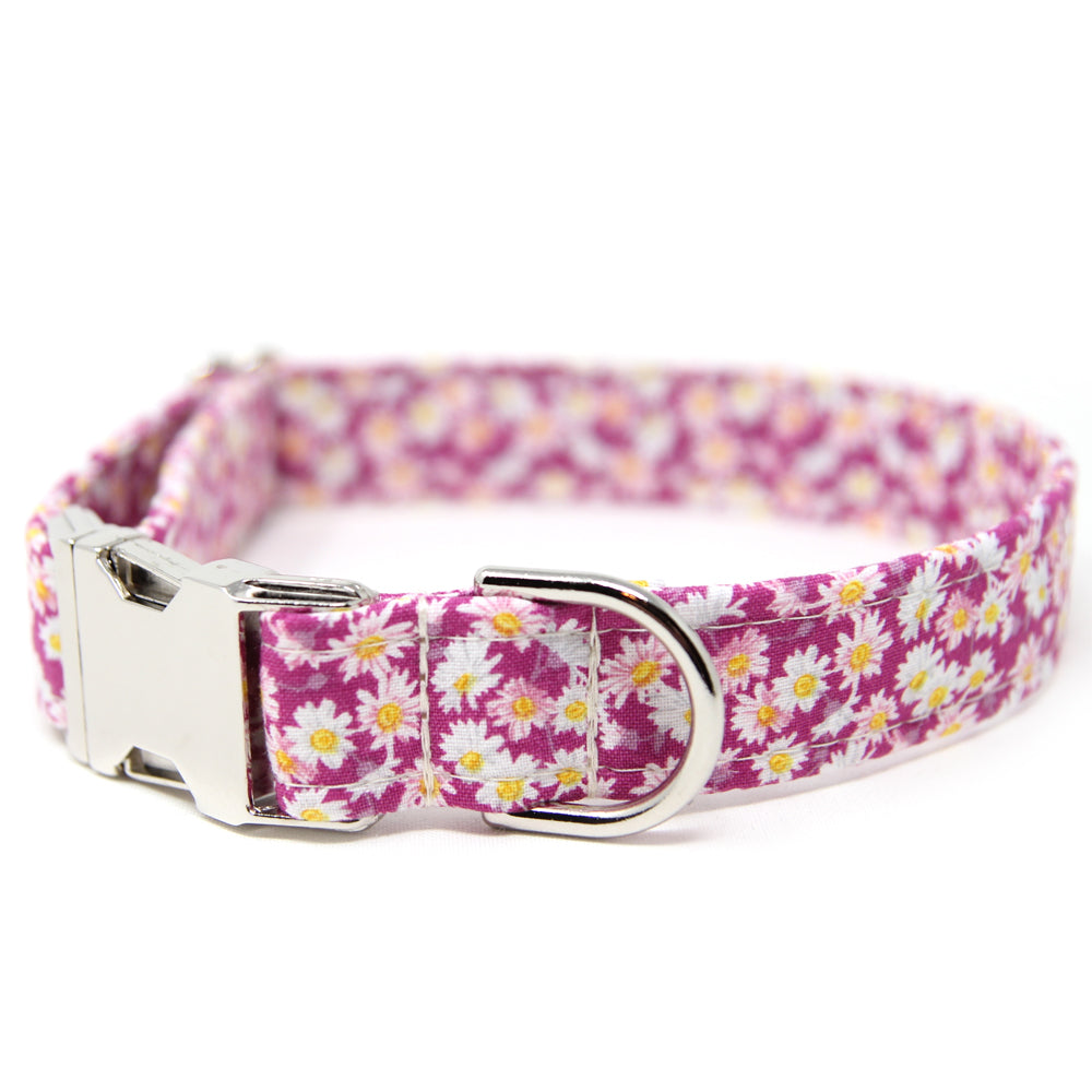 A popular floral collar with white daisies on a pink background