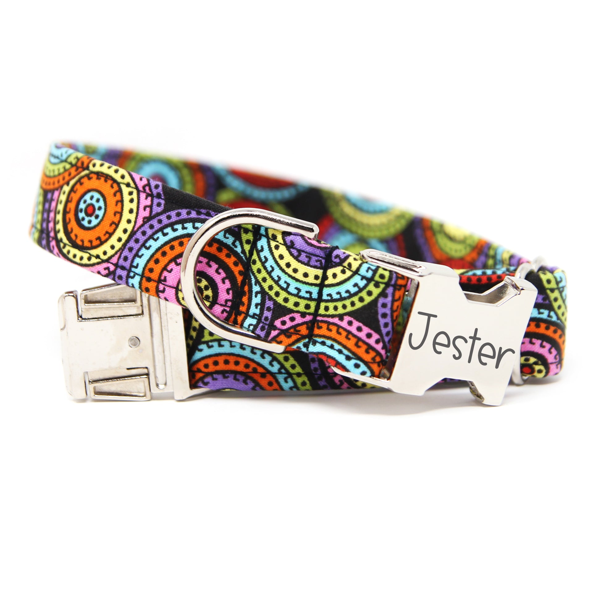 This colorful polka dot collar provides both style and comfort for your dog. Choosing this fun dot dog collar will ensure that your looks fabulous for walks while staying safe with a personalized collar