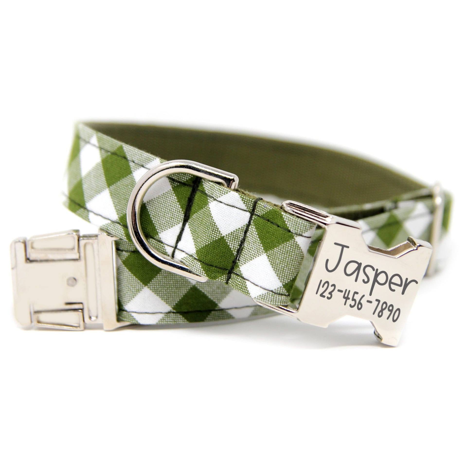 Looking for your next distinguished look for your precious pup? This Olive Green Plaid Collar will keep your pooch on point and looking sharp!
