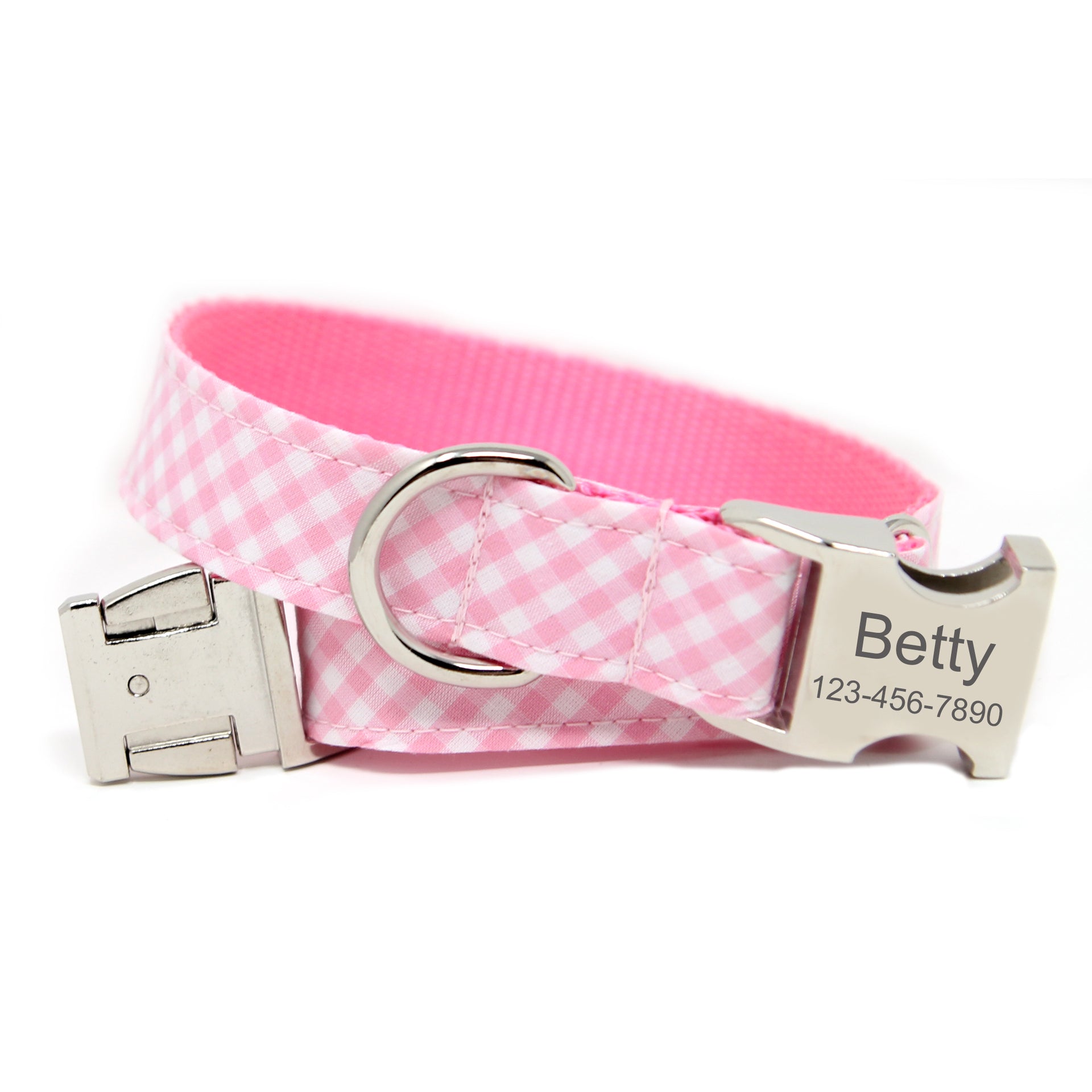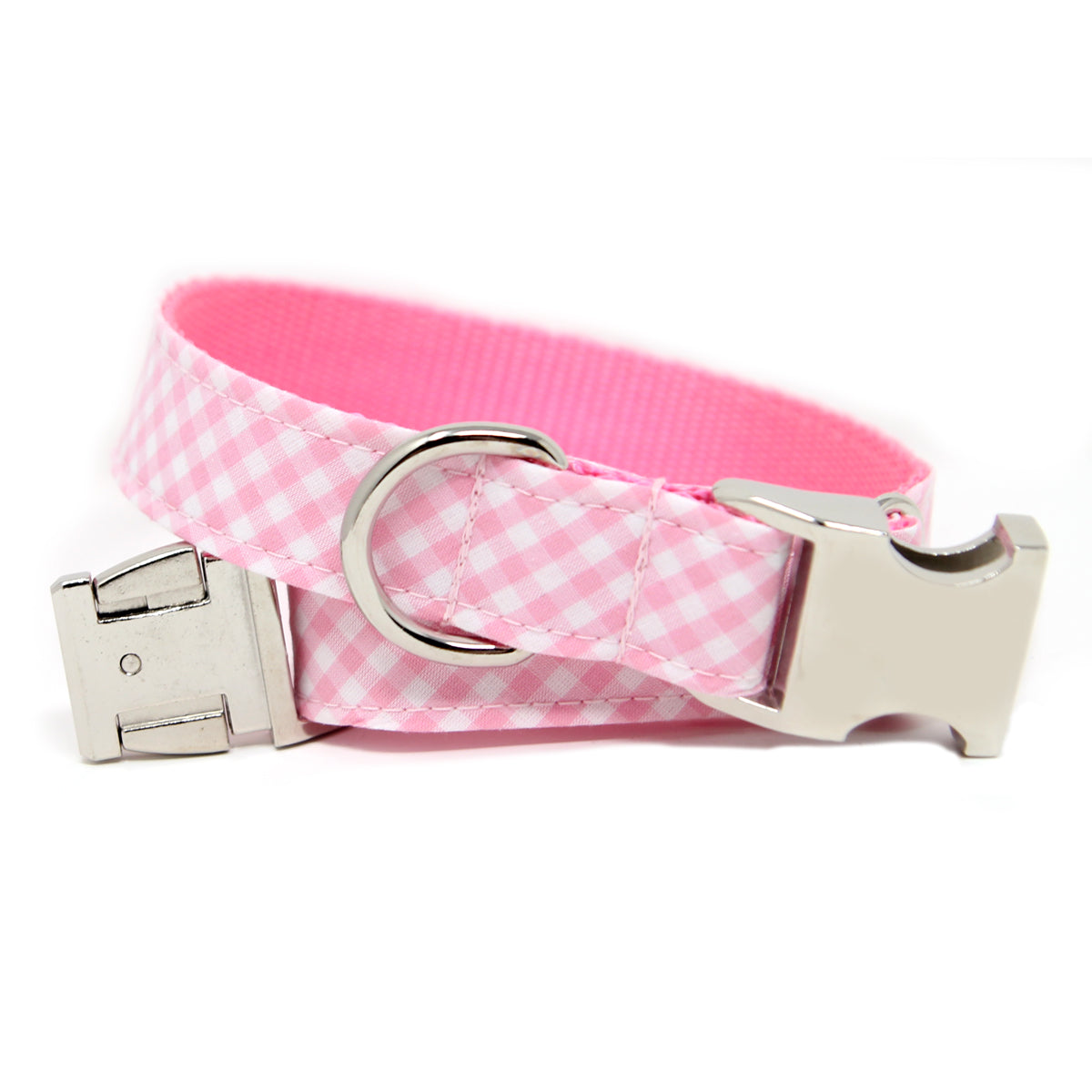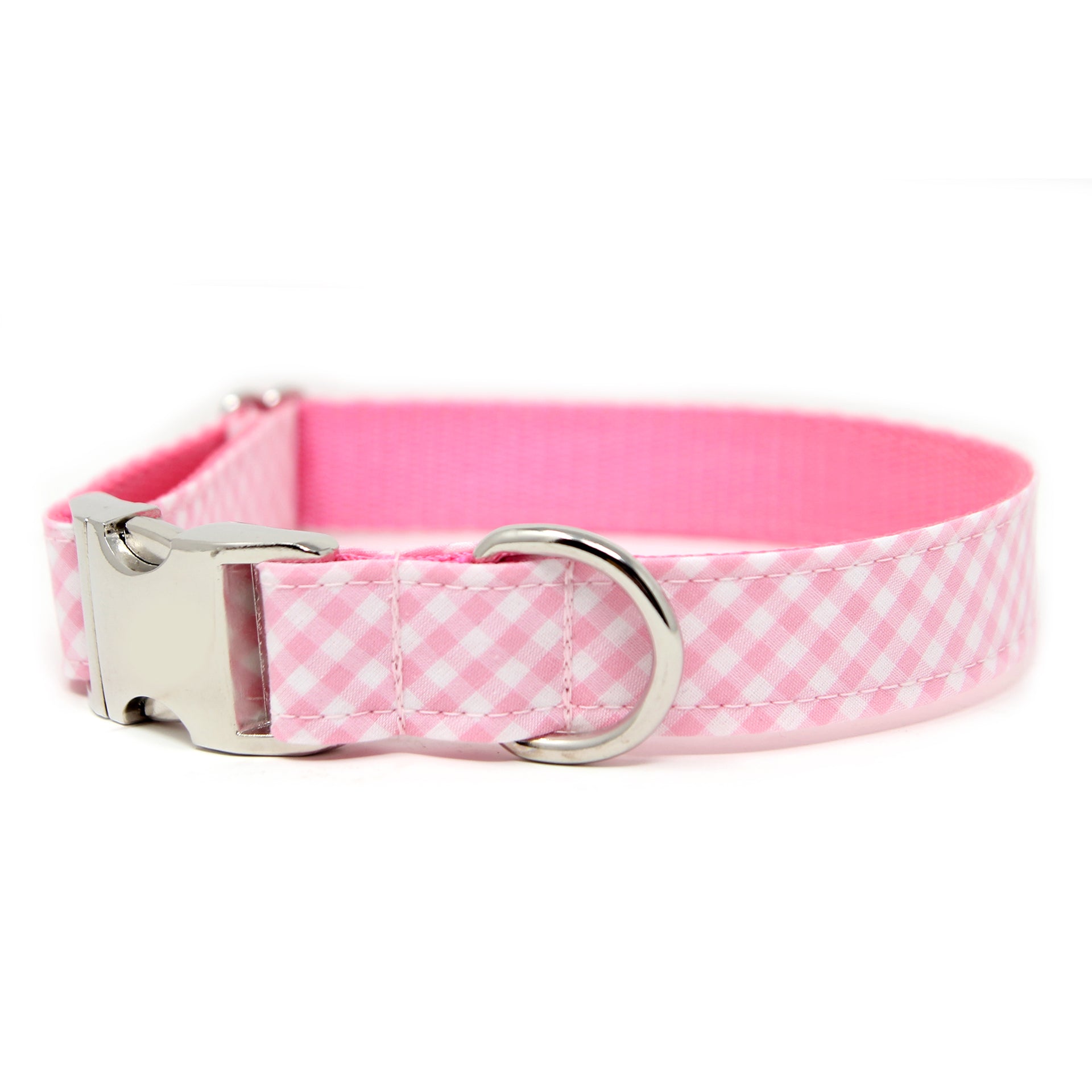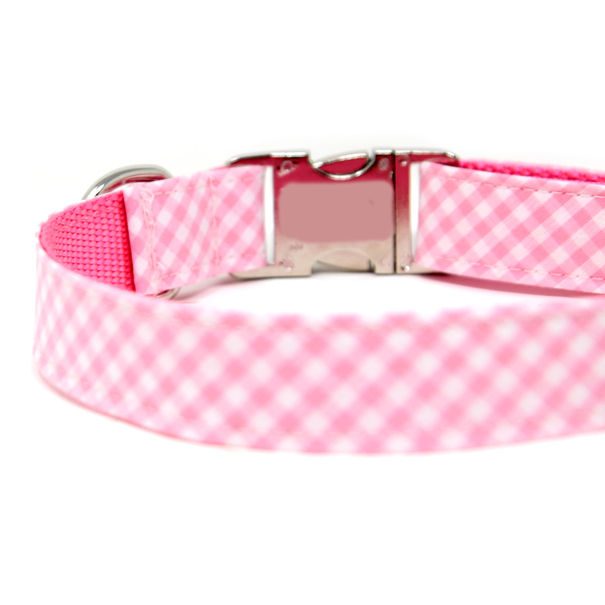 A lovely Pink gingham pattern on a bias. Handmade in the USA with finest materials available. Please measure your pet prior to purchase to ensure a proper fit. Not all of our buckles are suitable for small breed dogs.